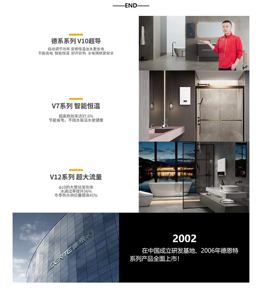 德恩特品牌旗下涵蓋即熱式電熱水器,速熱式電熱水器,快熱式電熱水器品牌和凈水機等