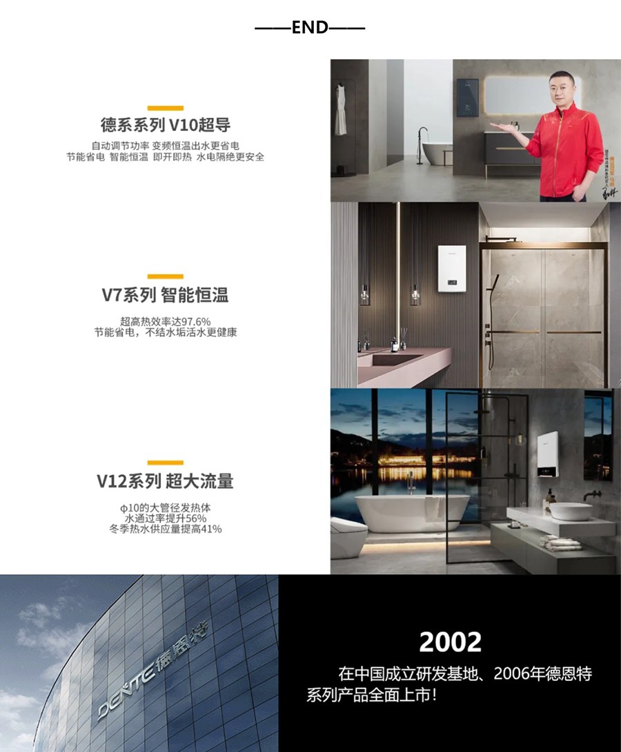 德恩特品牌旗下涵蓋即熱式電熱水器,速熱式電熱水器,快熱式電熱水器品牌和凈水機等